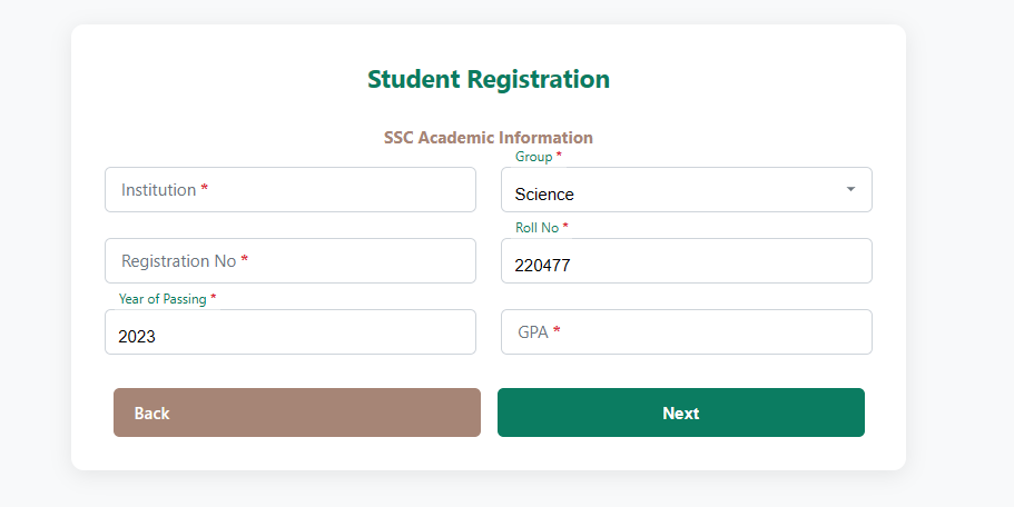 Step-1. Student Information (শিক্ষার্থী তথ্য)